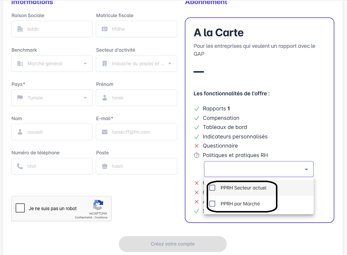 Remplacer PPRH par Secteur actuel = Domaine d’activité du benchmark