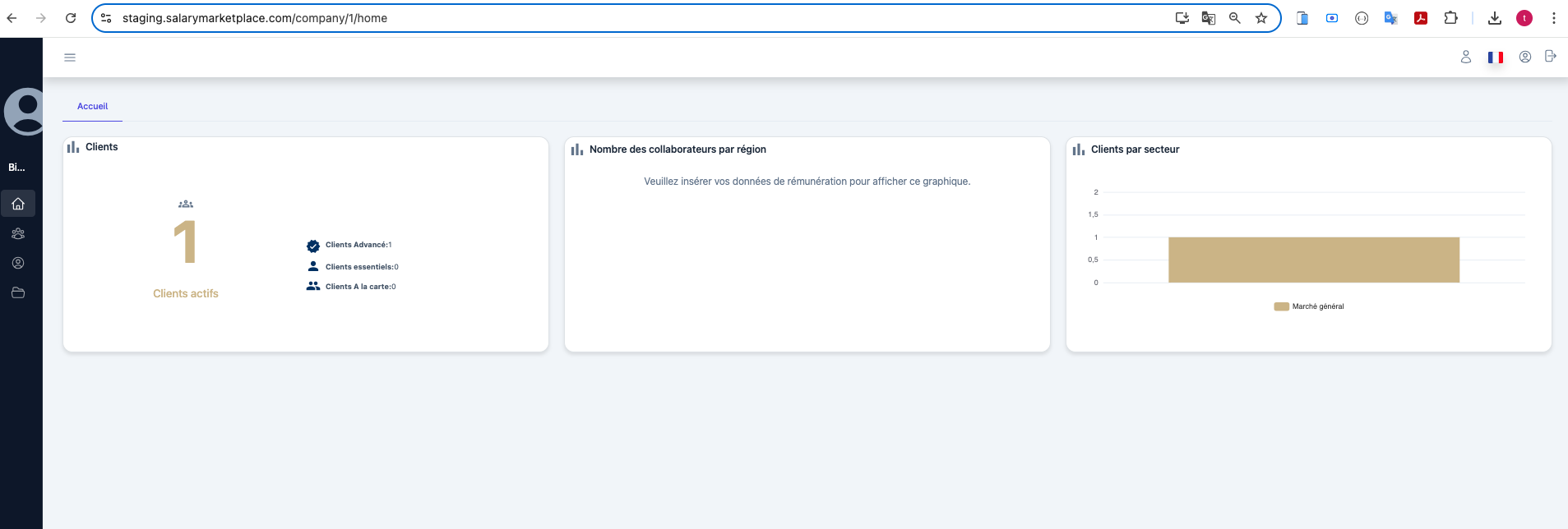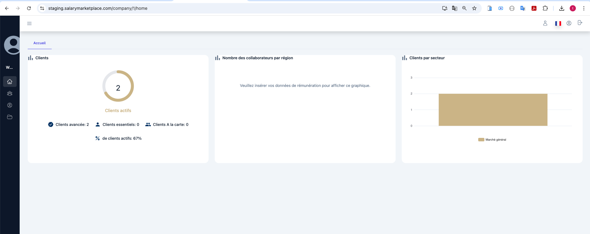 Admin > Nombre des collaborateur par région = message (Les clients n'ont pas encore importé les compensations sur la plateforme.)