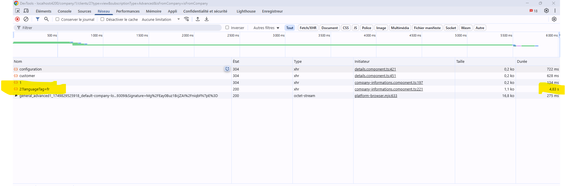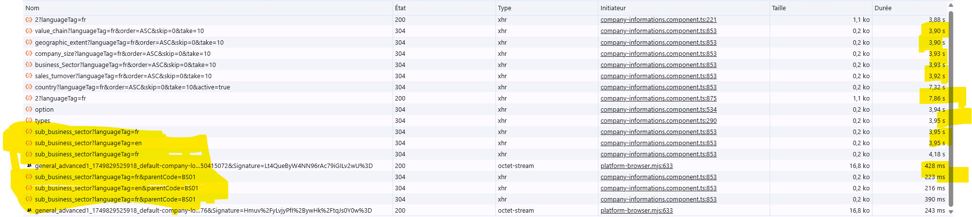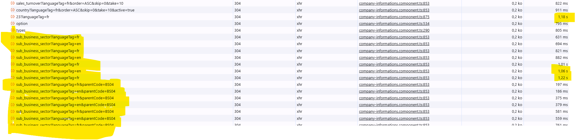 Note 2 : getOne company by Id (temps de reponse > 4 sec)