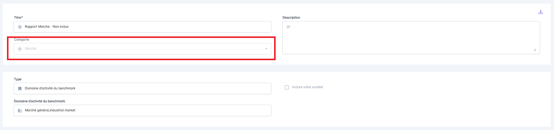 dans le Domaine d’activité du benchmark, pour Industrial market, il faut afficher marché industriel