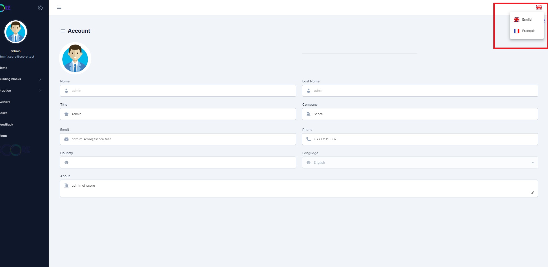 En tant que admin , je selectionne les langues paramétrés dans la fiche profil.