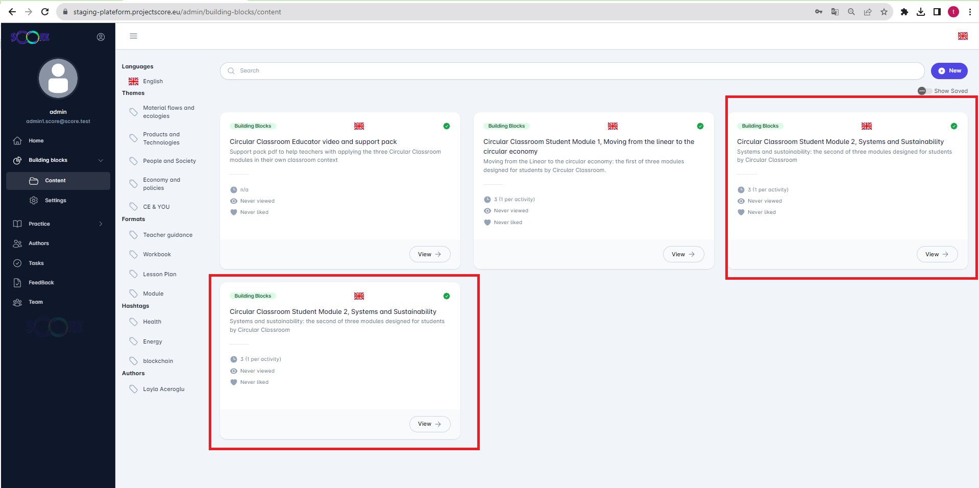 ouvertAdmin > BB : Save BB practice