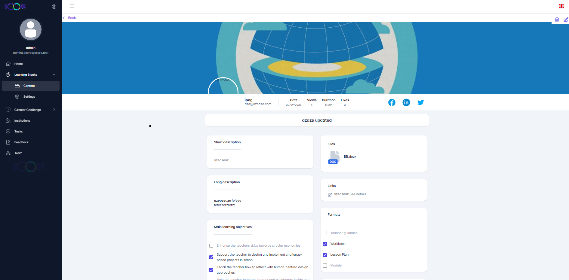 Si le learning-blocks est utlisé dnas un challenge, on le supprime pas
