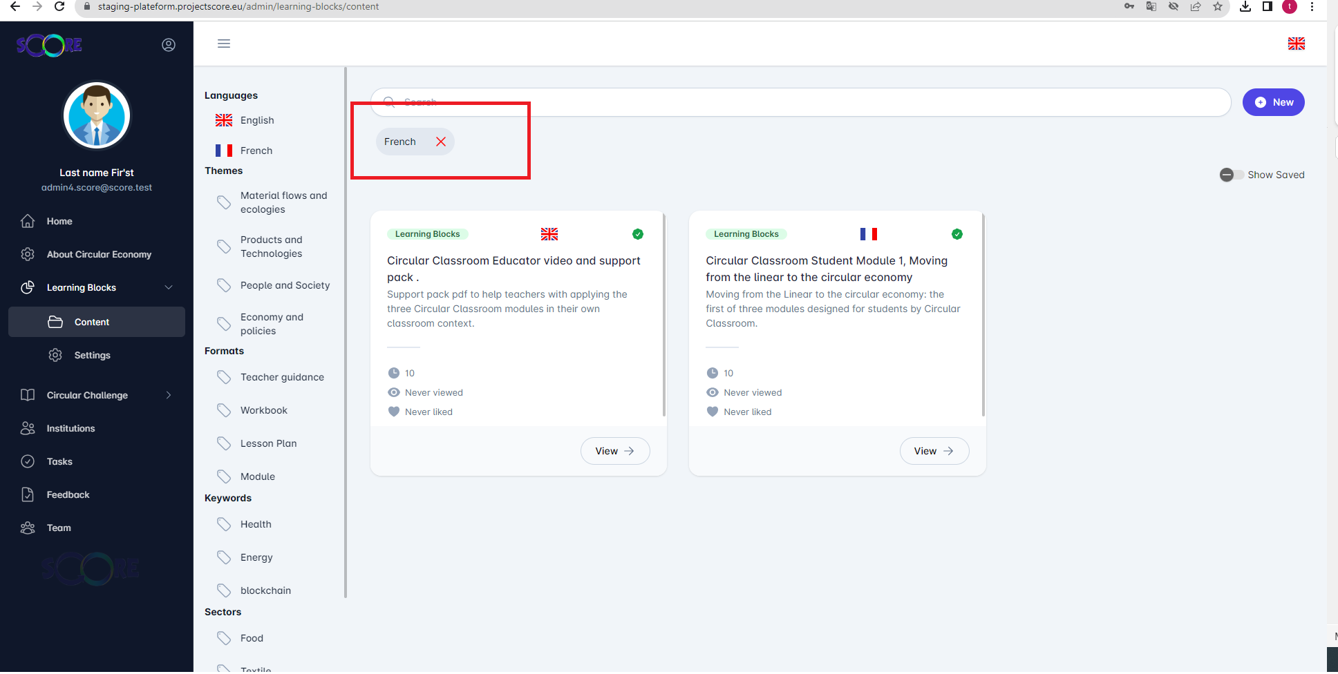 ouvert03_admin : BL > filtre par langue ne fontionne pas correctement