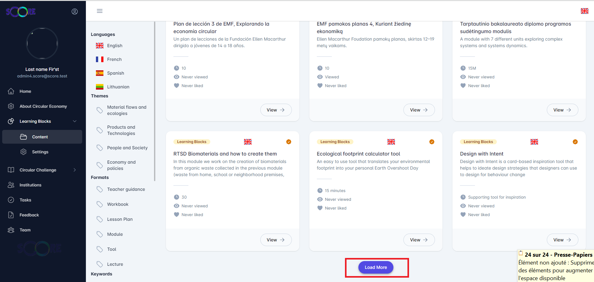 Admin et user : Supprimer le load more si on na pas des cards à affiher