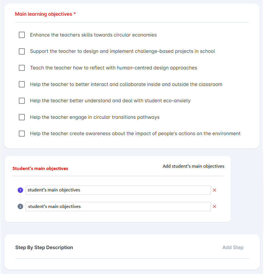 2. Ajouter le block Student’s main objectives ( comme le compo de de main messages dans le challenge ) + ( il faut prendre ce changement dans la translette pour les 4 langue )