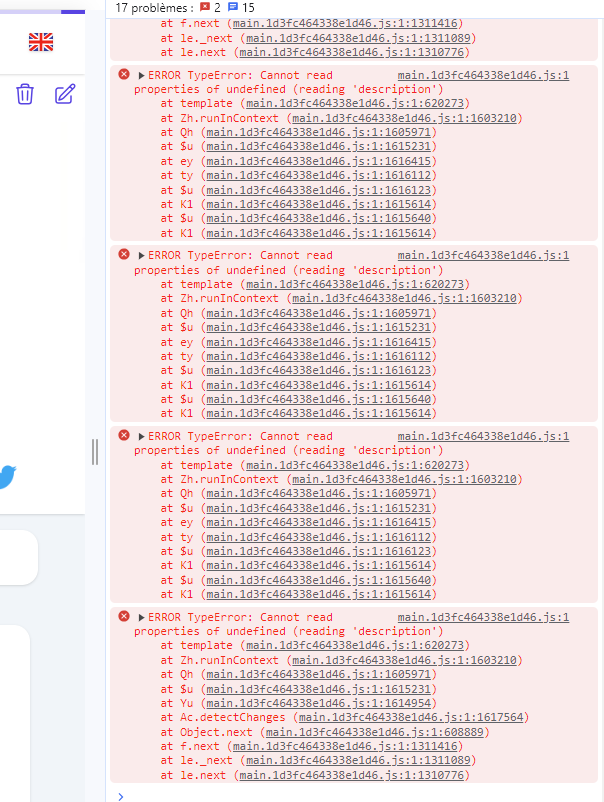 lors de la consultation d'un BL, lorsqu ej change la langue, j'ia une erreur console