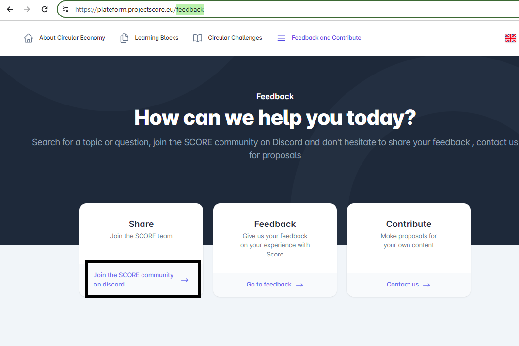 ouvertchanger le lien de Feedback and Contribute > Join the SCORE community on discord