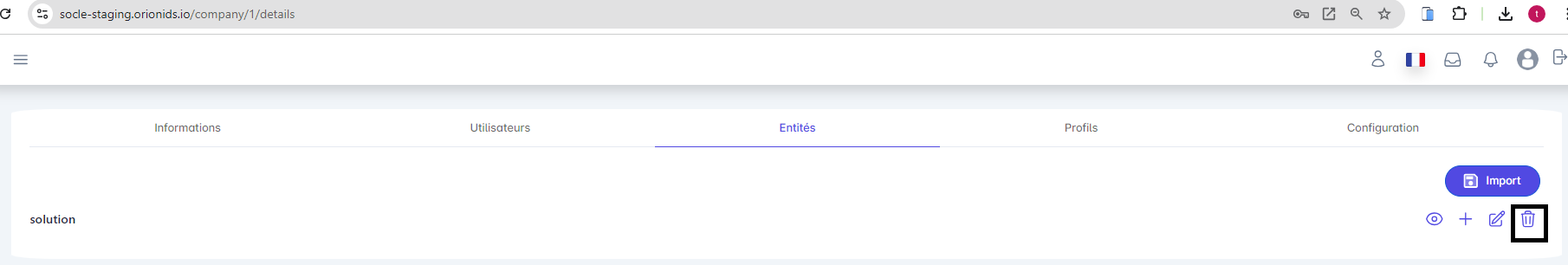 2. Il est impossible de supprimer une entité tant qu'un utilisateur est affecté à l'entité sélectionnée.