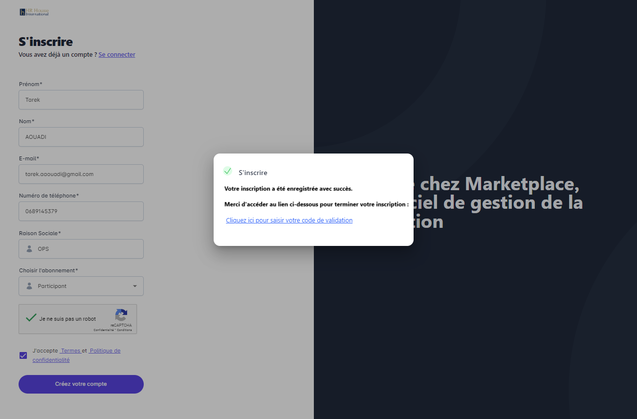 Votre inscription a été enregistrée avec succès.