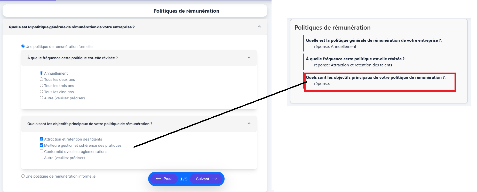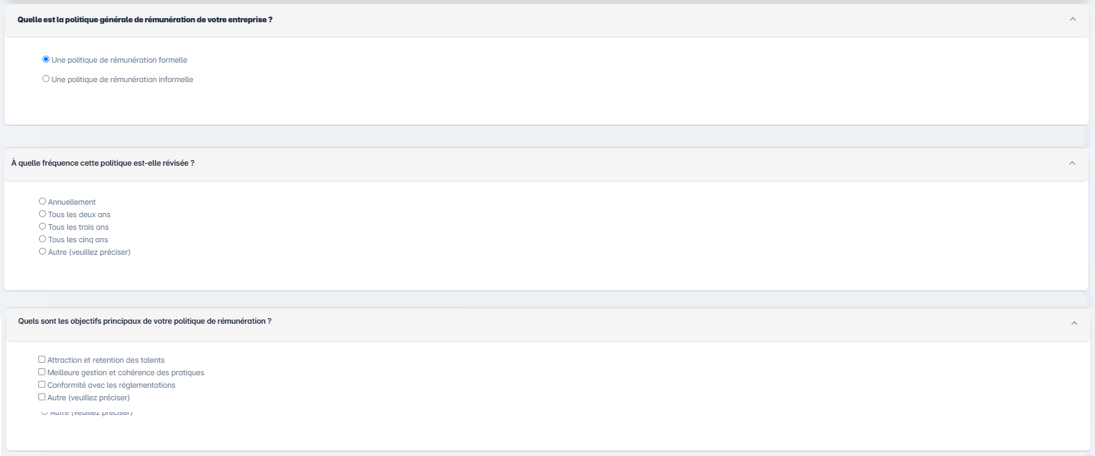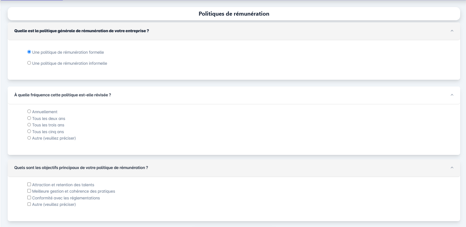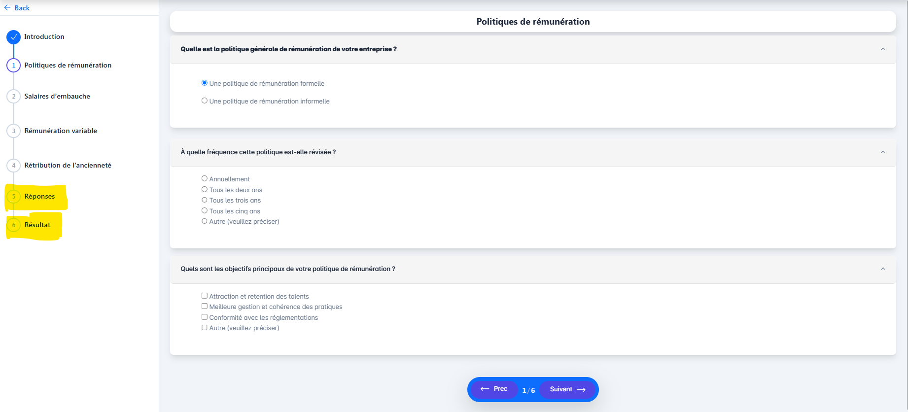 Pour le questionnaire : Questionnaire 1 -Les Politiques et pratiques de Rémunération - étape Politiques de rémunération