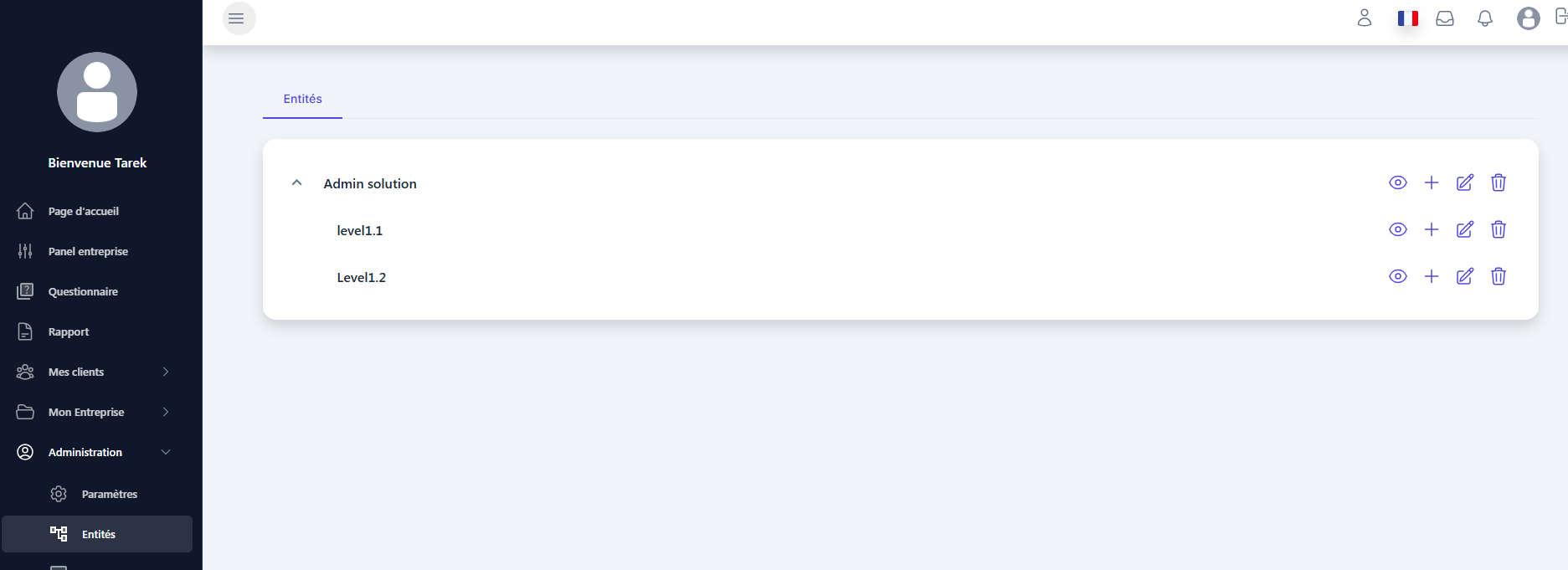 Le système récupère et applique automatiquement la configuration de l'entité générique sauf le niveau 1