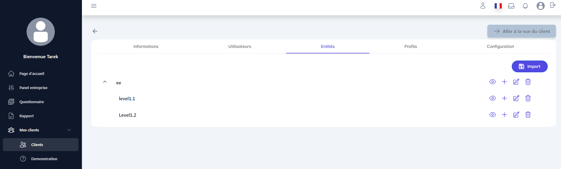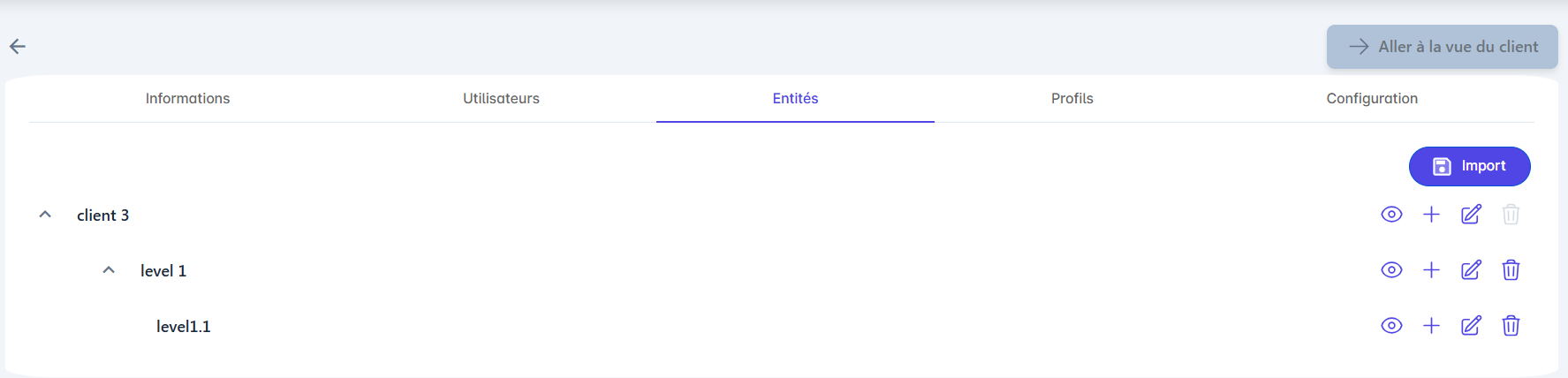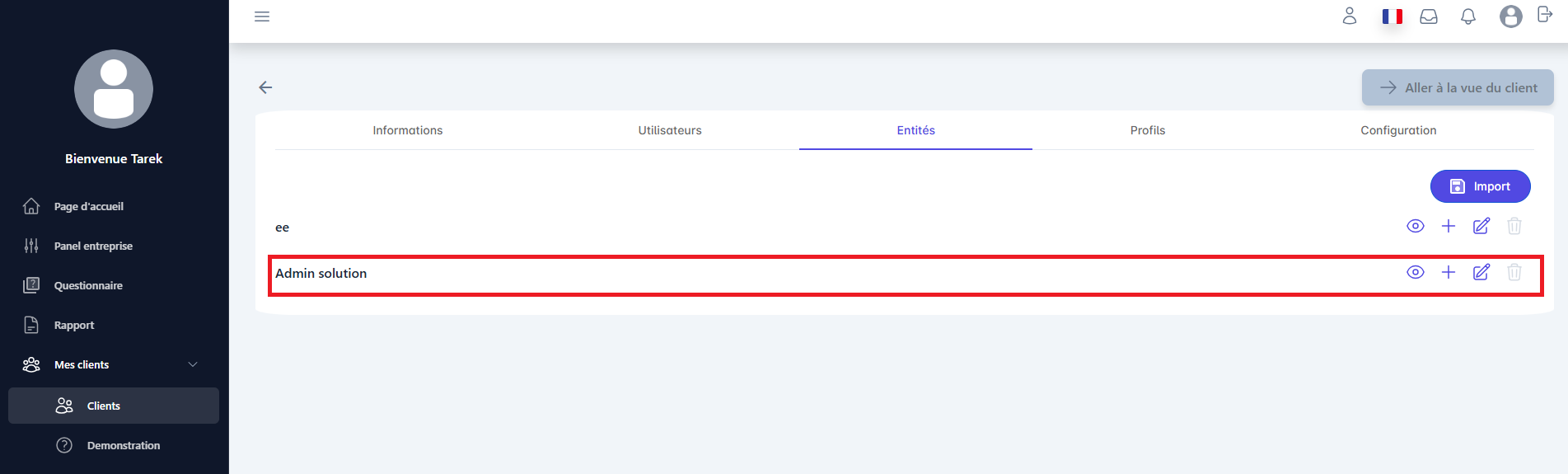 Lorsque l'utilisateur clique sur le bouton "Import" dans la section Entité