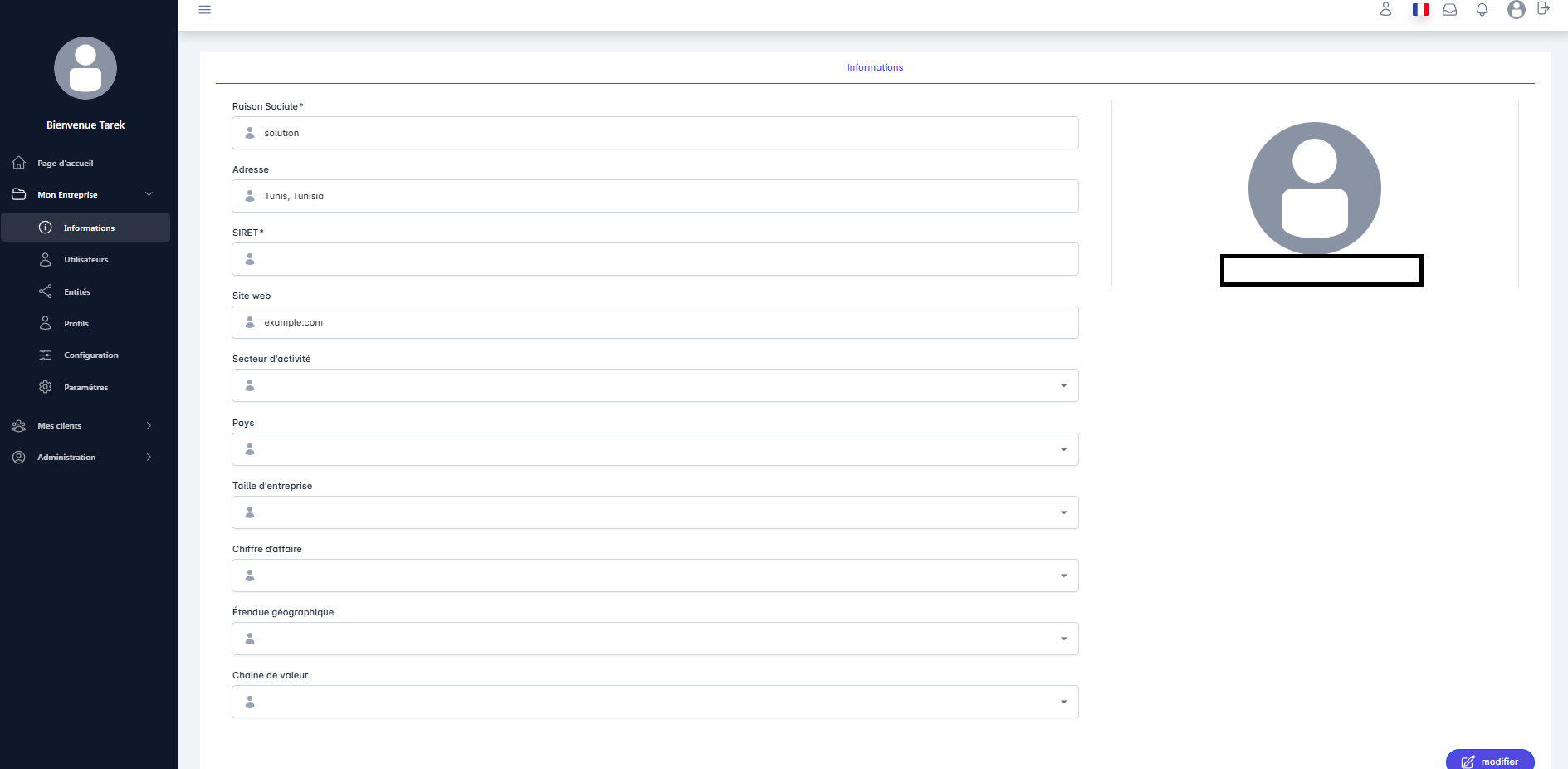 ouvert06_Mon entreprise : modifier logo mon entreprise