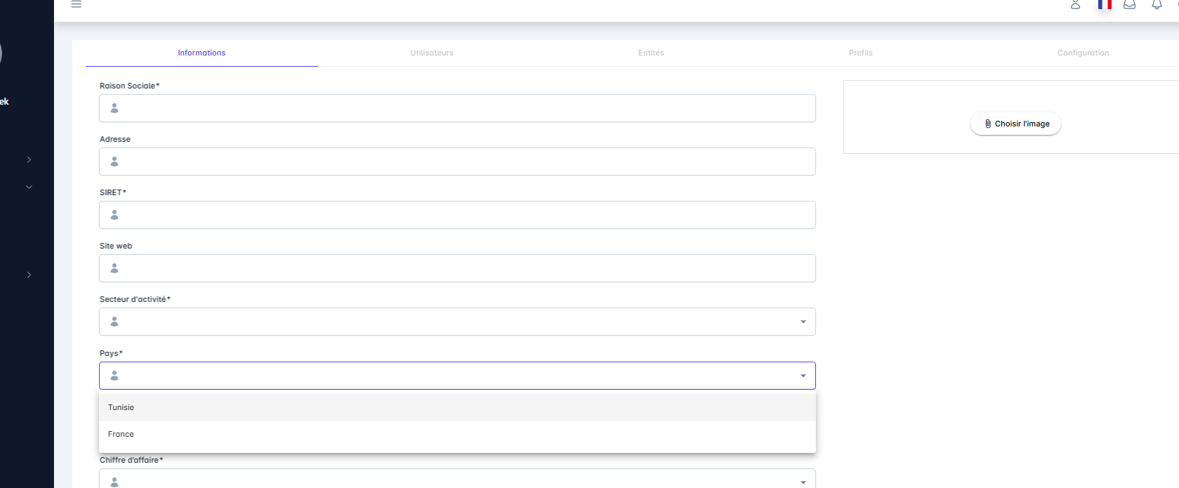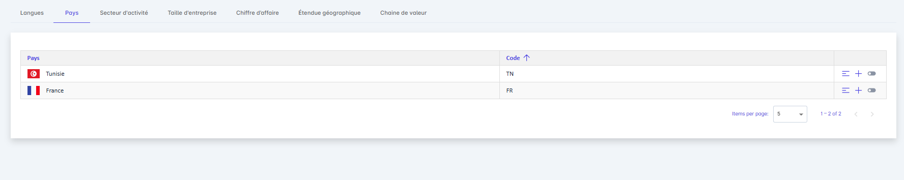 En cas de création : seuls les pays sélectionnés doivent être affichés.