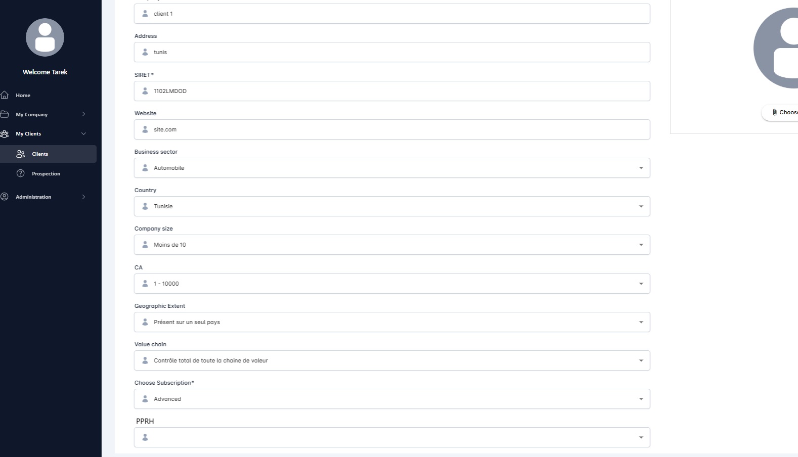 lorsque le client choisi un abonnement à la carte, pour la fonctionnalité PPRH, on affiche une liste mutiselect avec les champs ( marché et mon secteur )