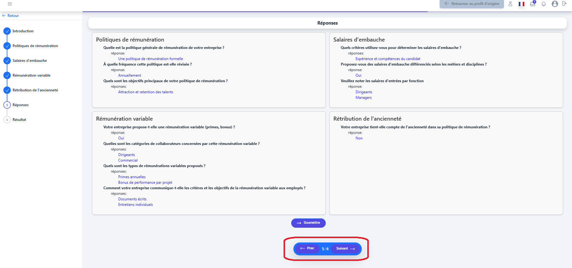 1. On ne peut pas passer à l'étape suivante si toutes les questions n'ont pas été répondues.