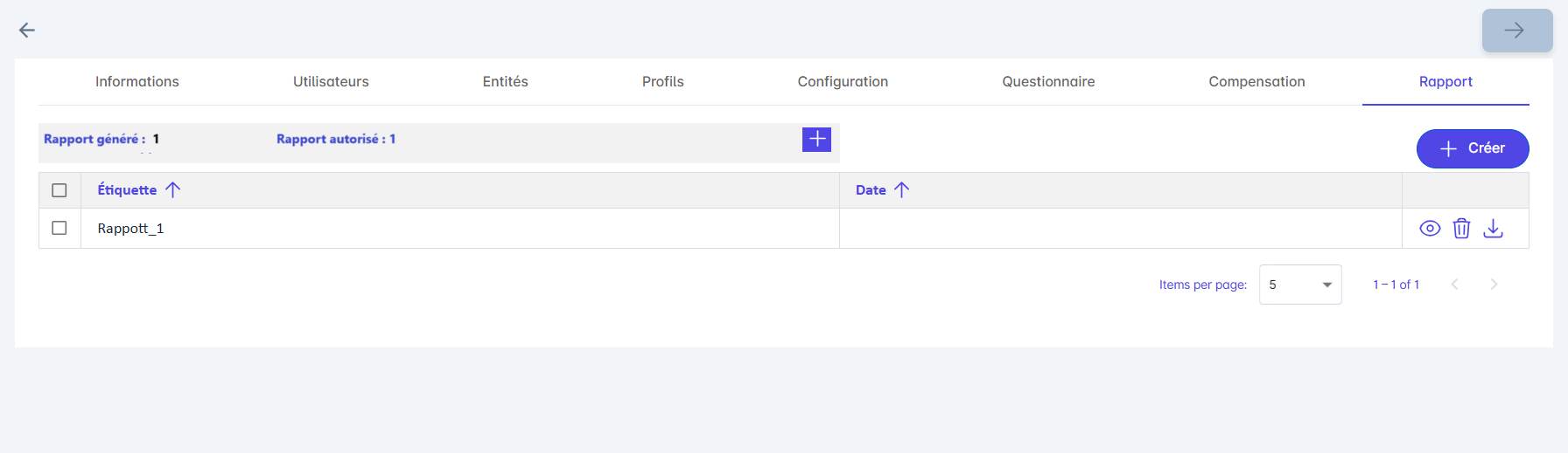 Le bouton "Créer" est conditionné à la fois par les droits d’accès de l'utilisateur et par la règle suivante : report_generated doit être strictement inférieur à report_authorized.