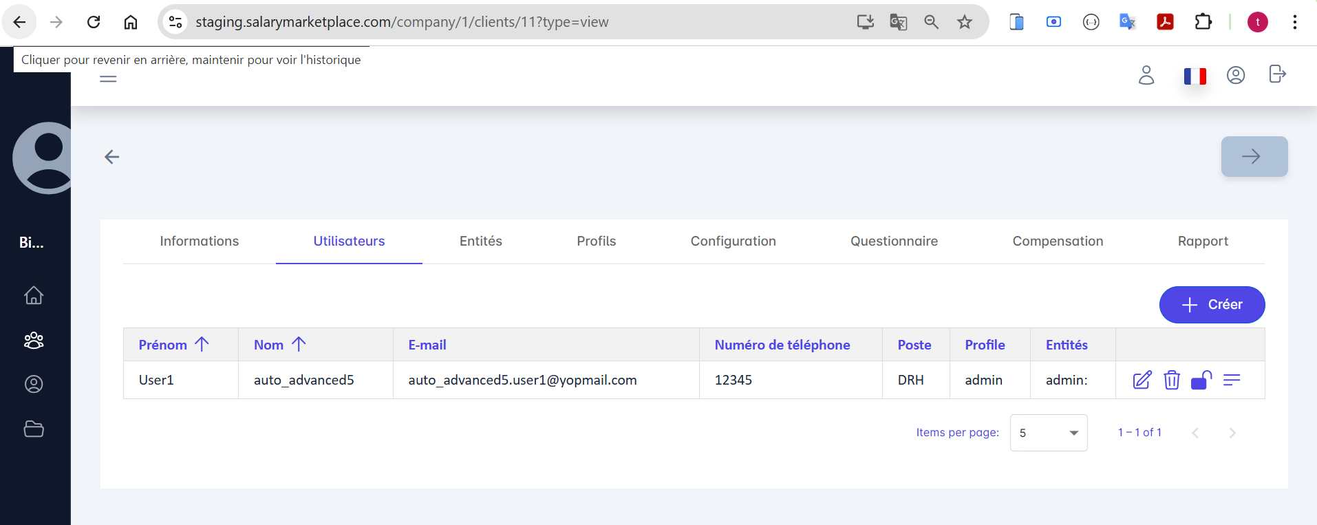 Retour : retour vers Liste des users